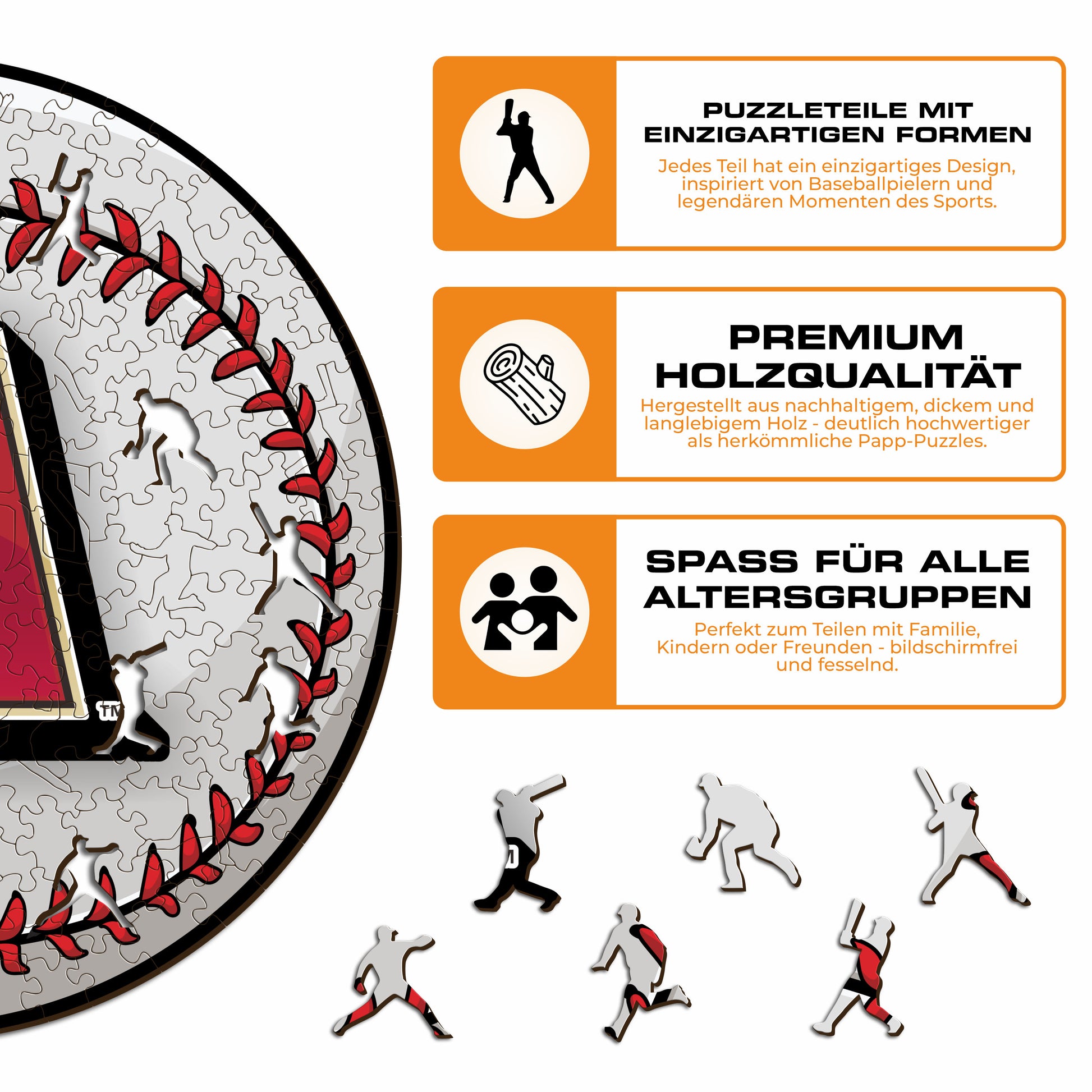 ✓ Jedes Puzzleteil hat eine einzigartige Form, die Elemente des Baseballs und ikonische Spielerposen darstellt.