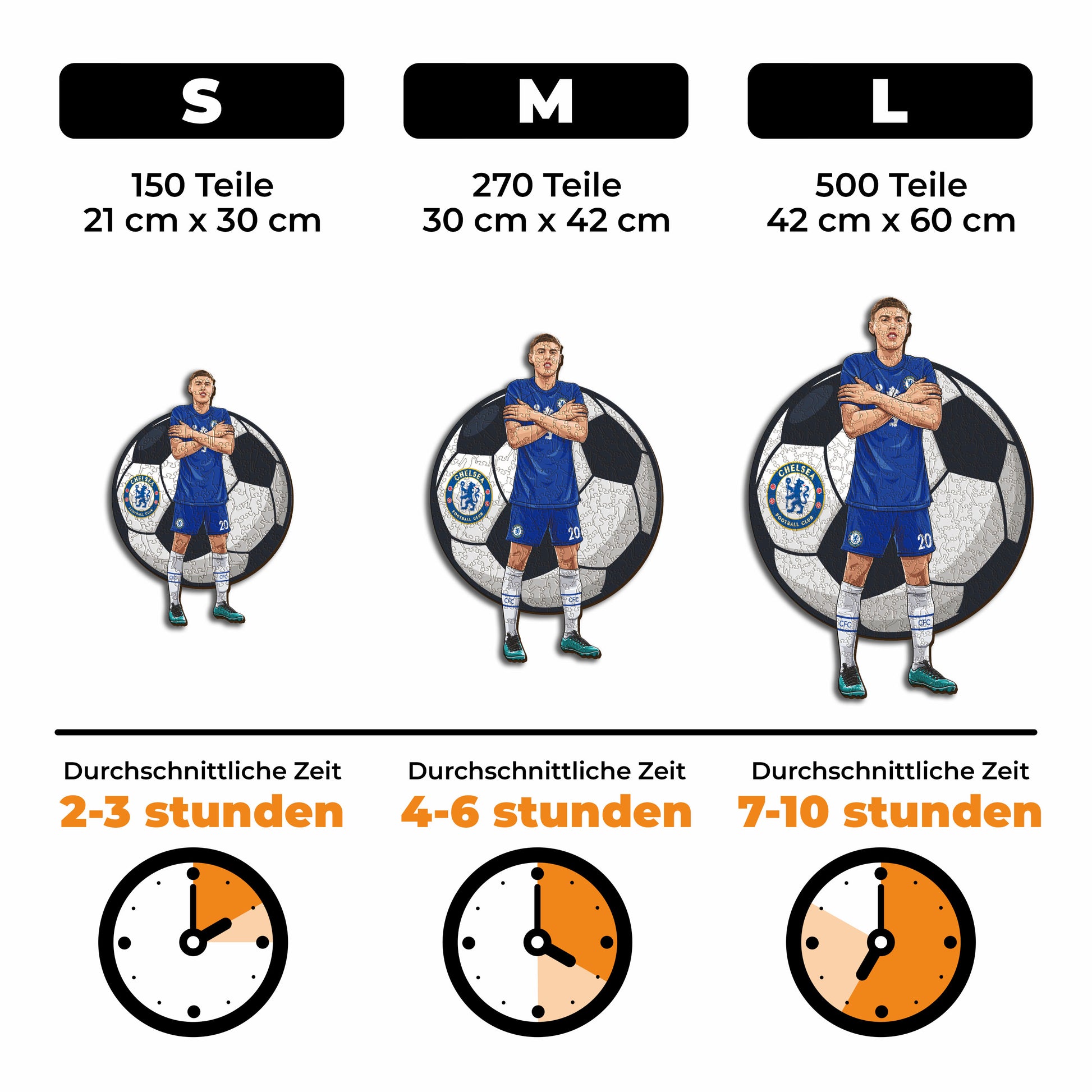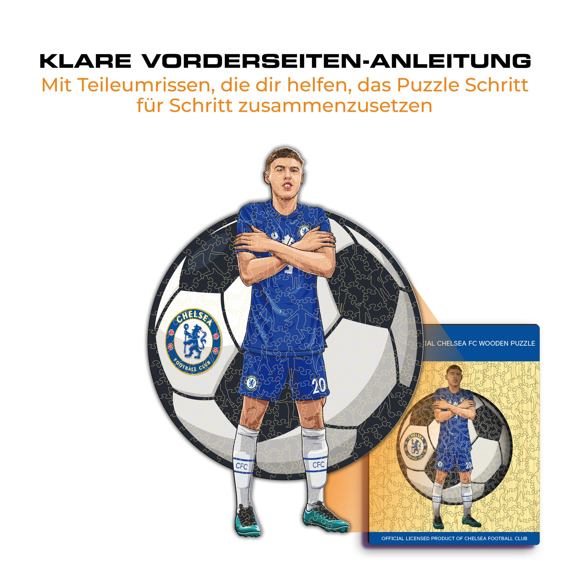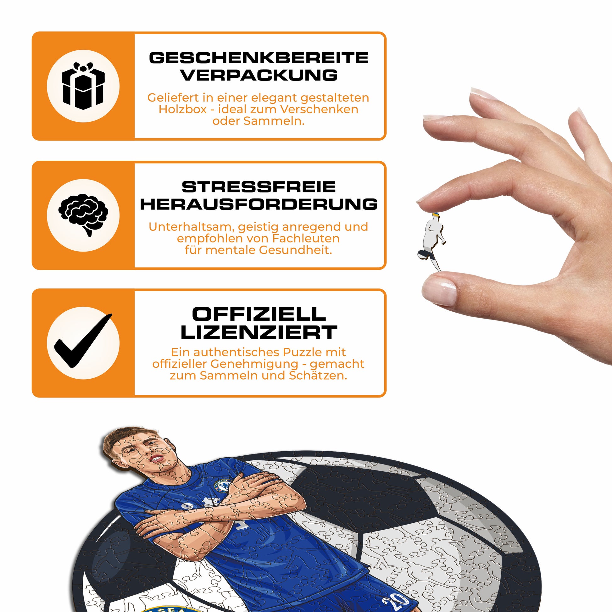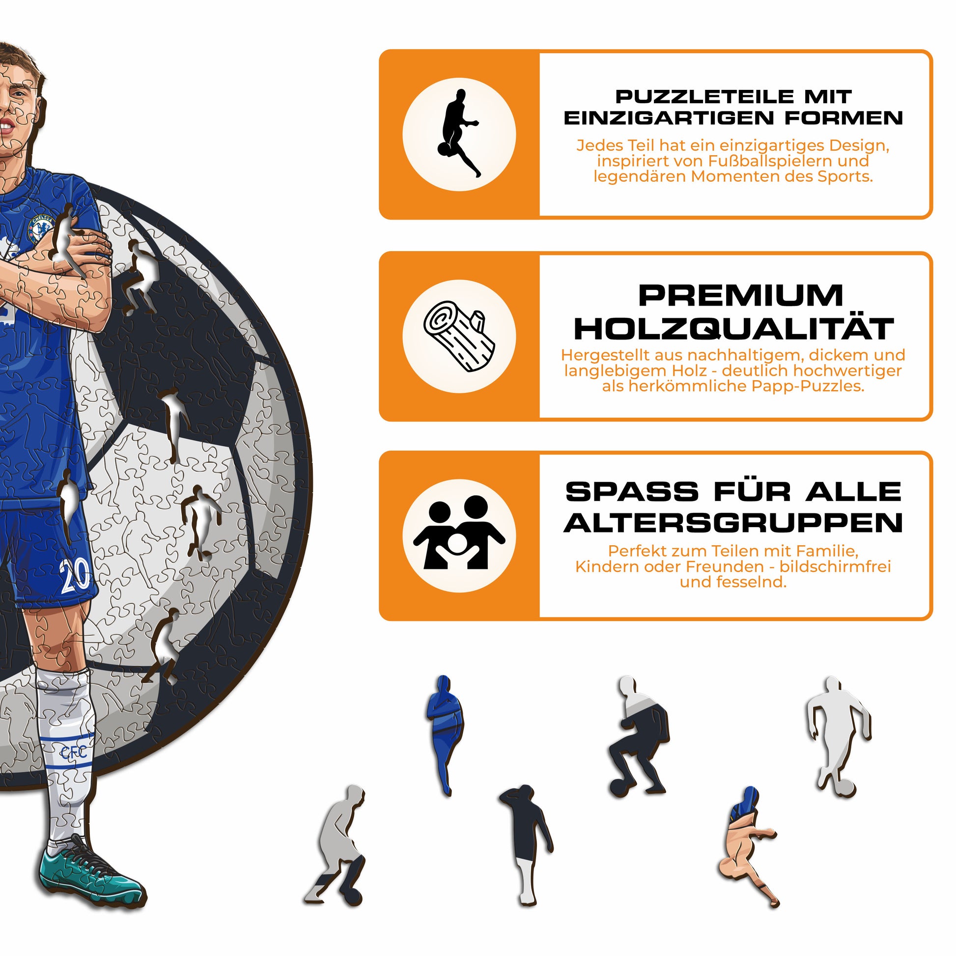 ✓ Jedes Puzzleteil hat eine einzigartige Form, die Elemente aus dem Fußball und ikonische Spielerposen darstellt.