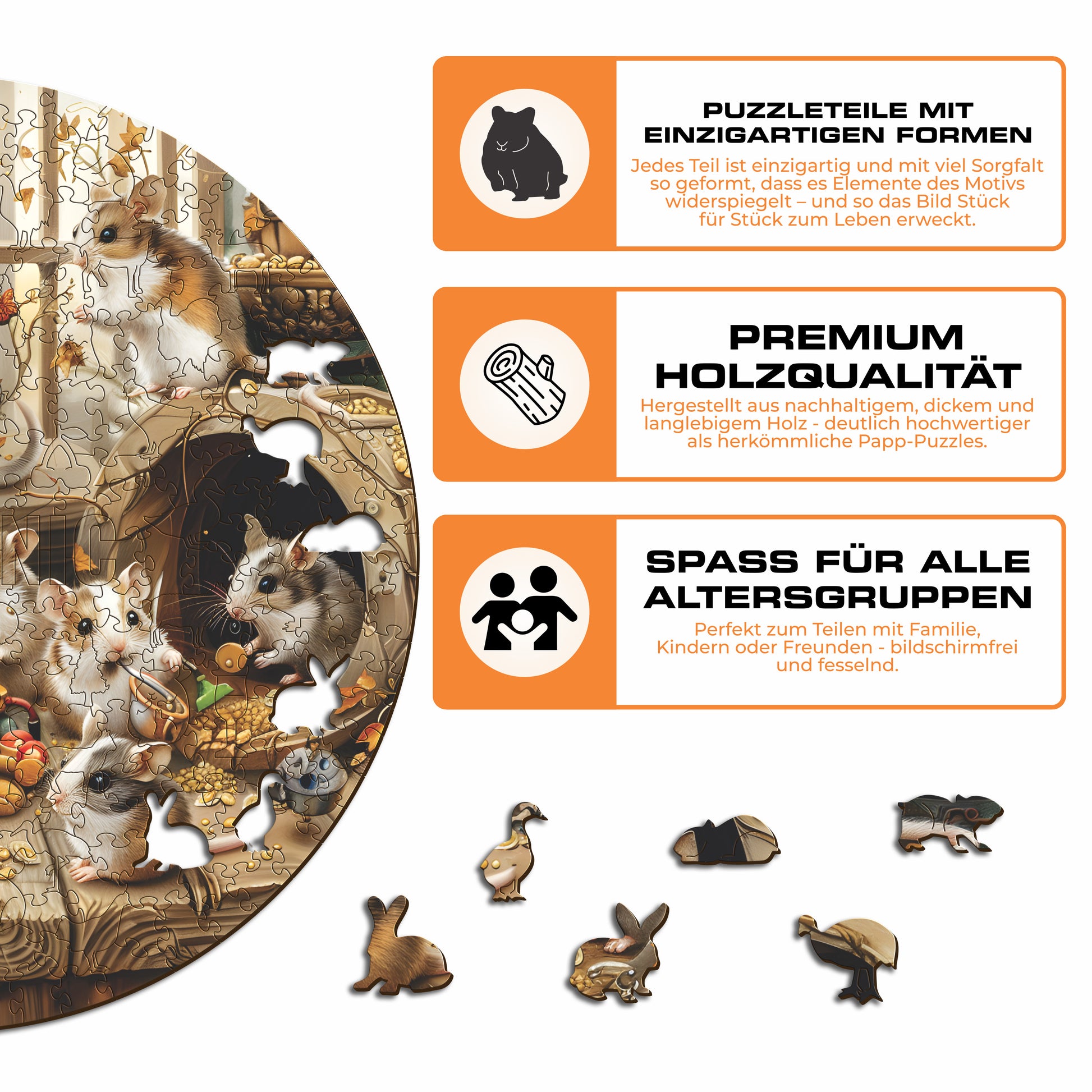 ✓ 1x Neugierige Hamster - Holzpuzzle