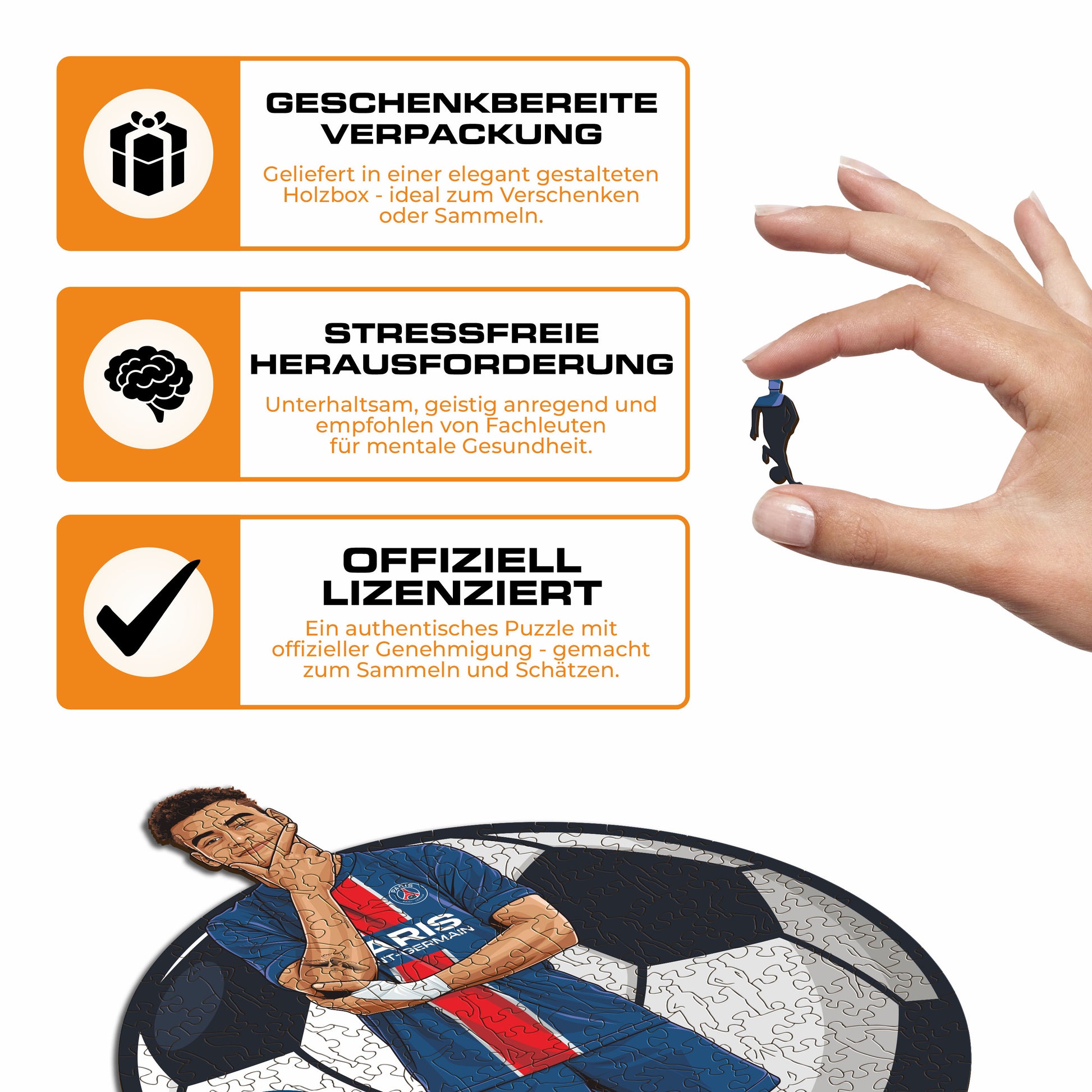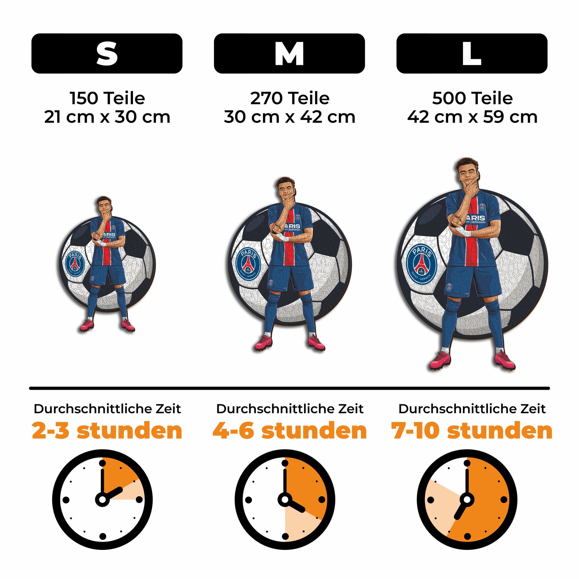 ✓ Jedes Puzzleteil hat eine einzigartige Form, die Elemente aus dem Fußball und ikonische Spielerposen darstellt.