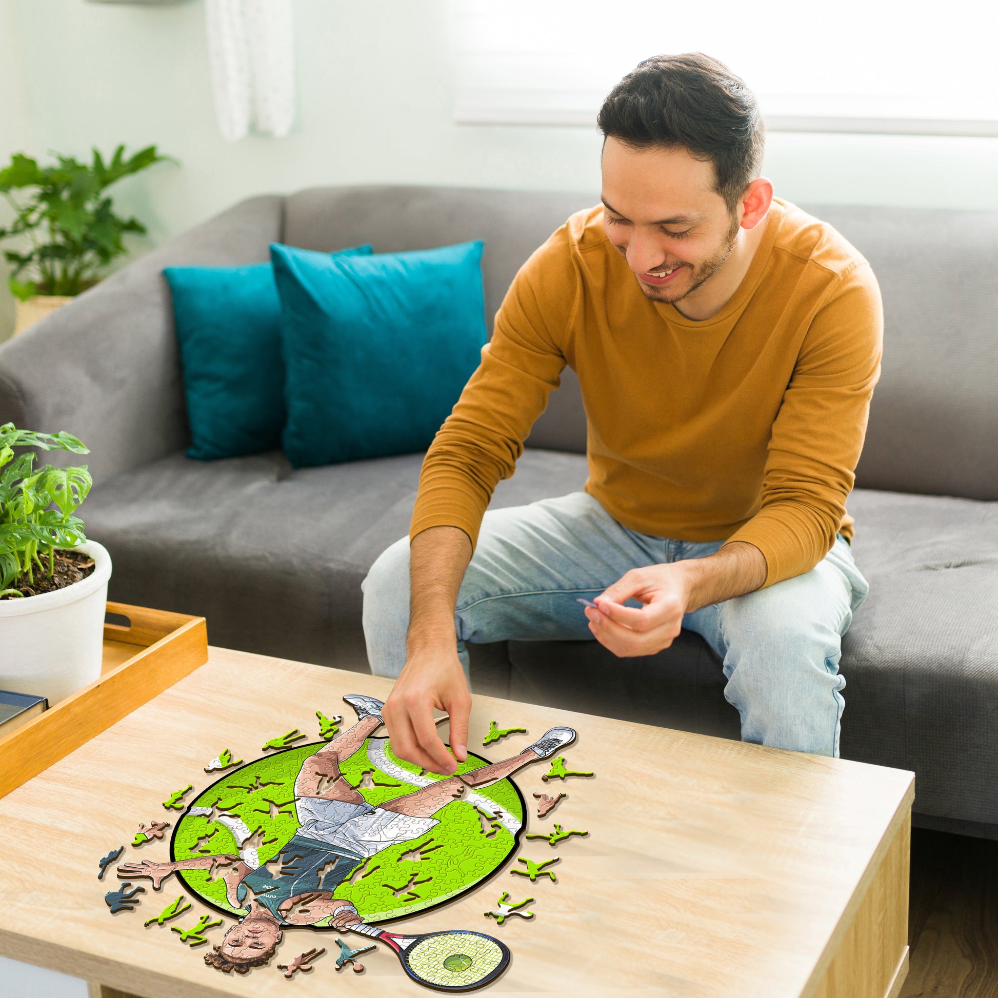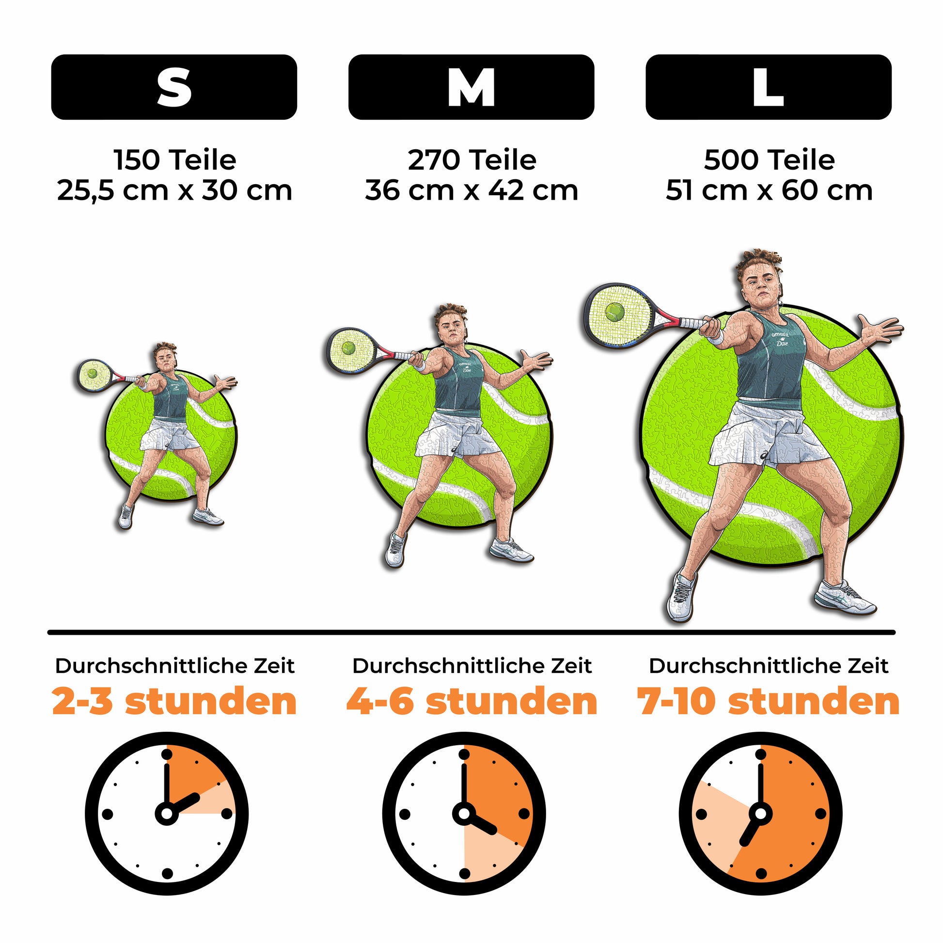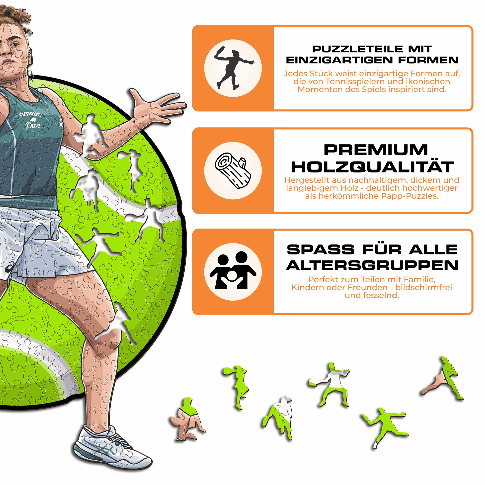 ✓ Jedes Puzzleteil hat eine einzigartige Form, die Elemente aus dem Tennis und ikonische Spielerposen darstellt.