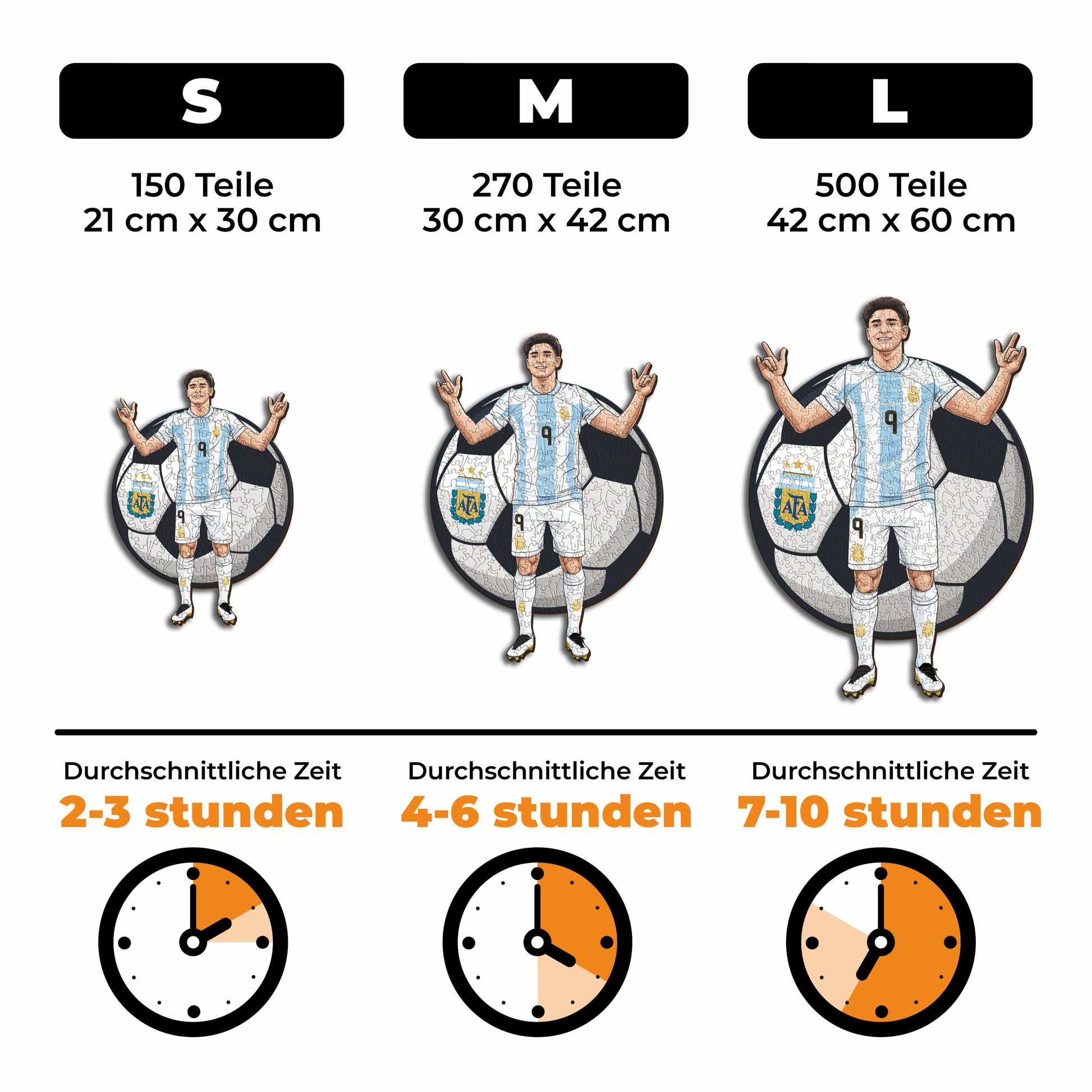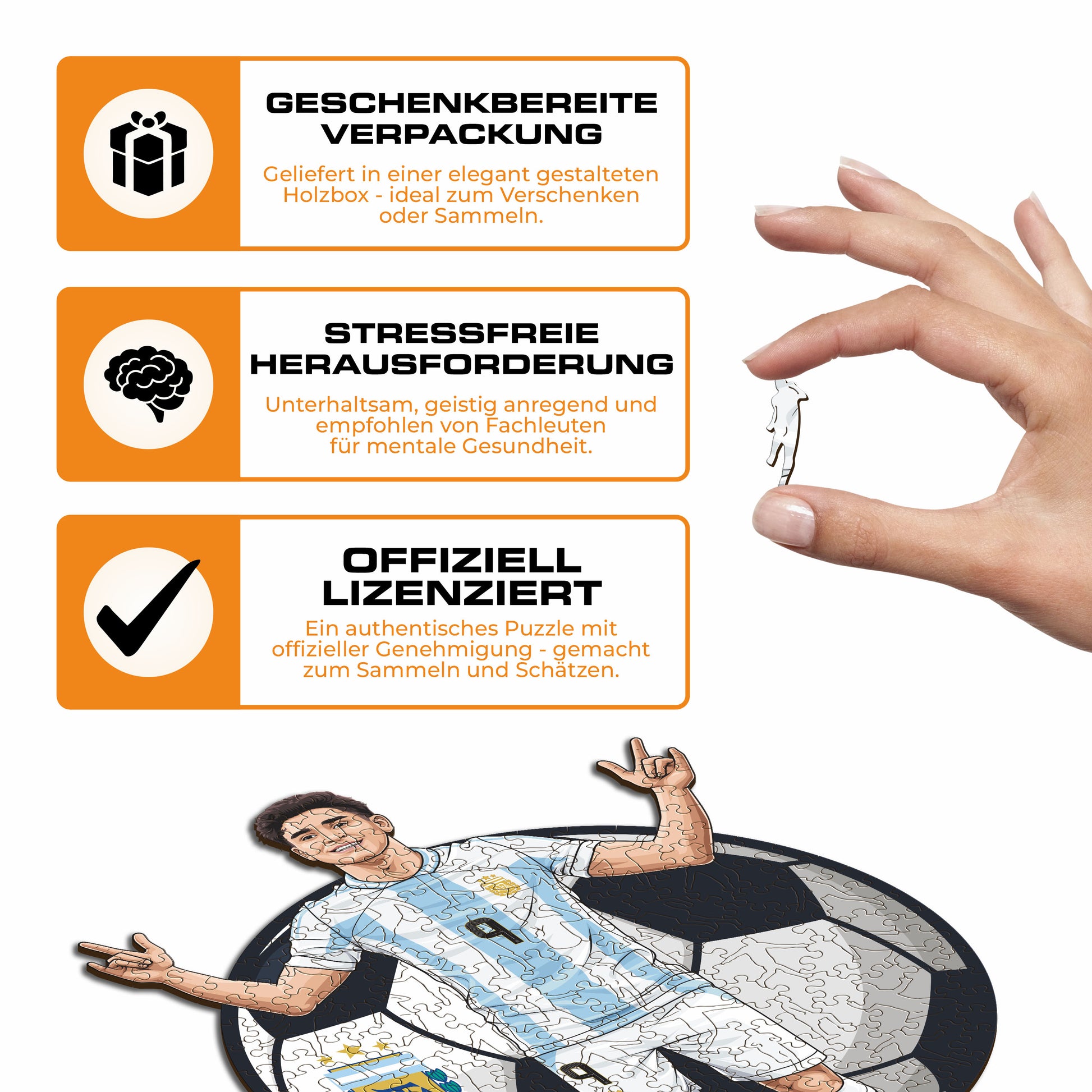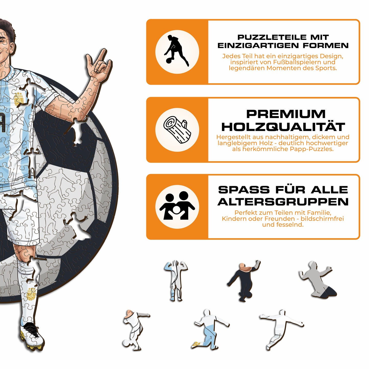 ✓ Jedes Puzzleteil hat eine einzigartige Form, die Elemente aus dem Fußball und ikonische Spielerposen darstellt.