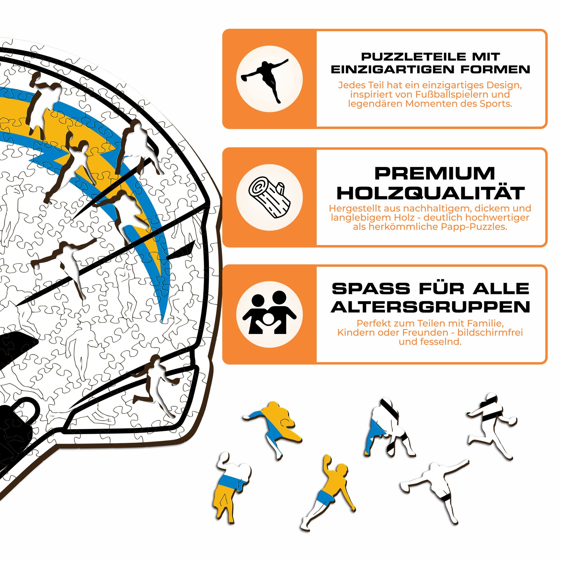 ✓ Jedes Puzzleteil hat eine einzigartige Form, die Elemente des Fußballs und ikonische Spielerposen darstellt.