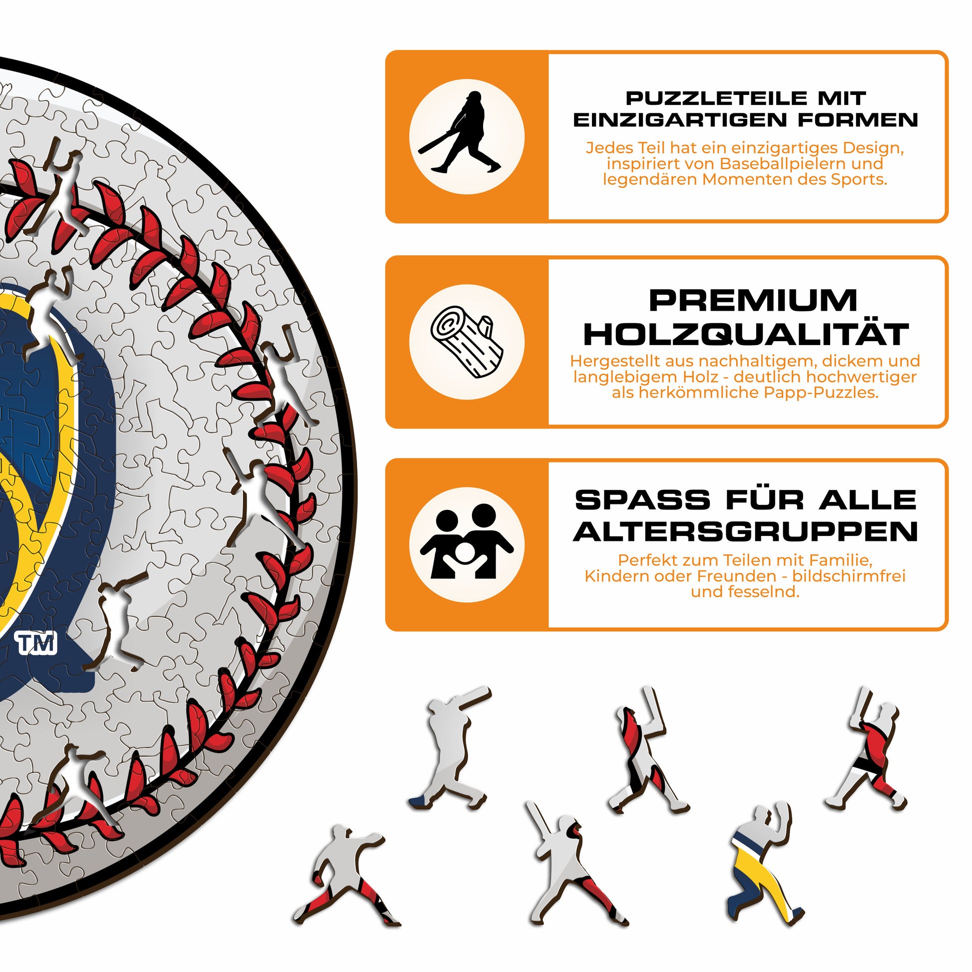 ✓ 1x Milwaukee Brewers™ Baseball – Offizielles Holzpuzzle