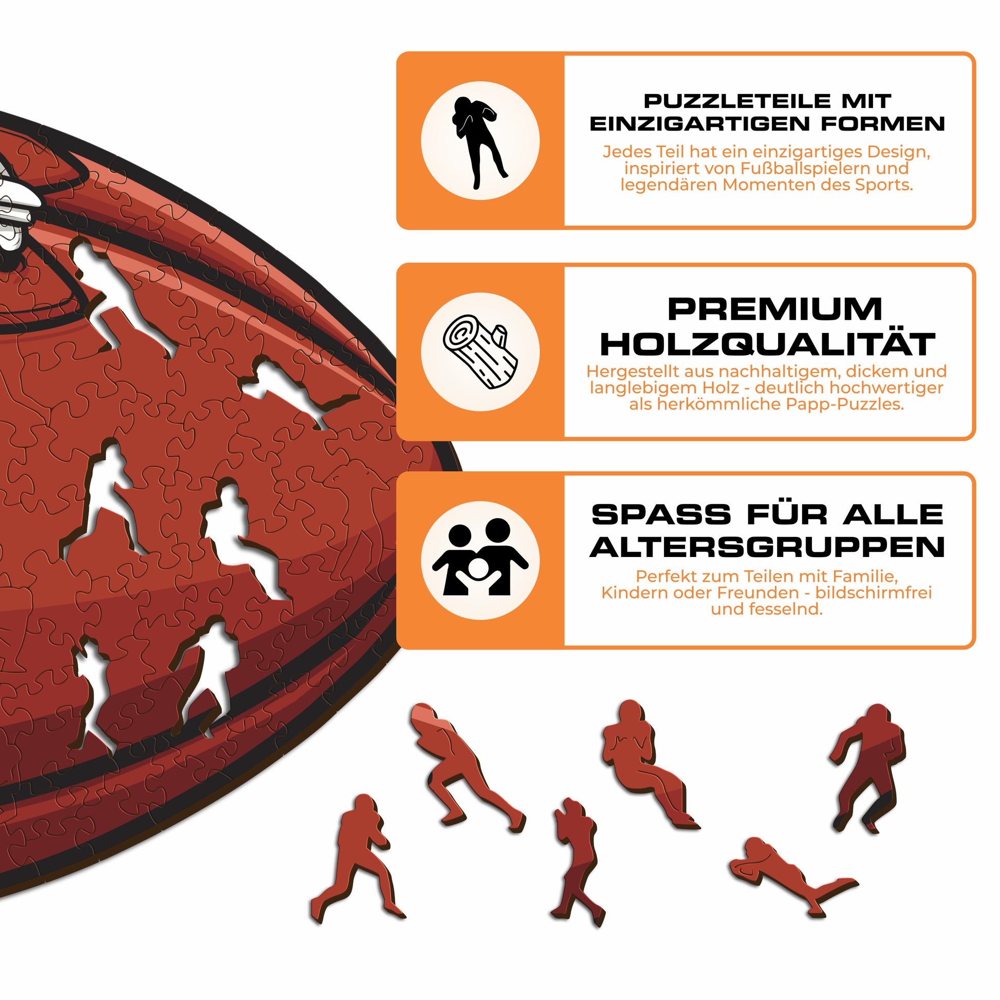 ✓ Jedes Puzzleteil hat eine einzigartige Form, die Elemente aus dem Fußball und ikonische Spielerposen darstellt.