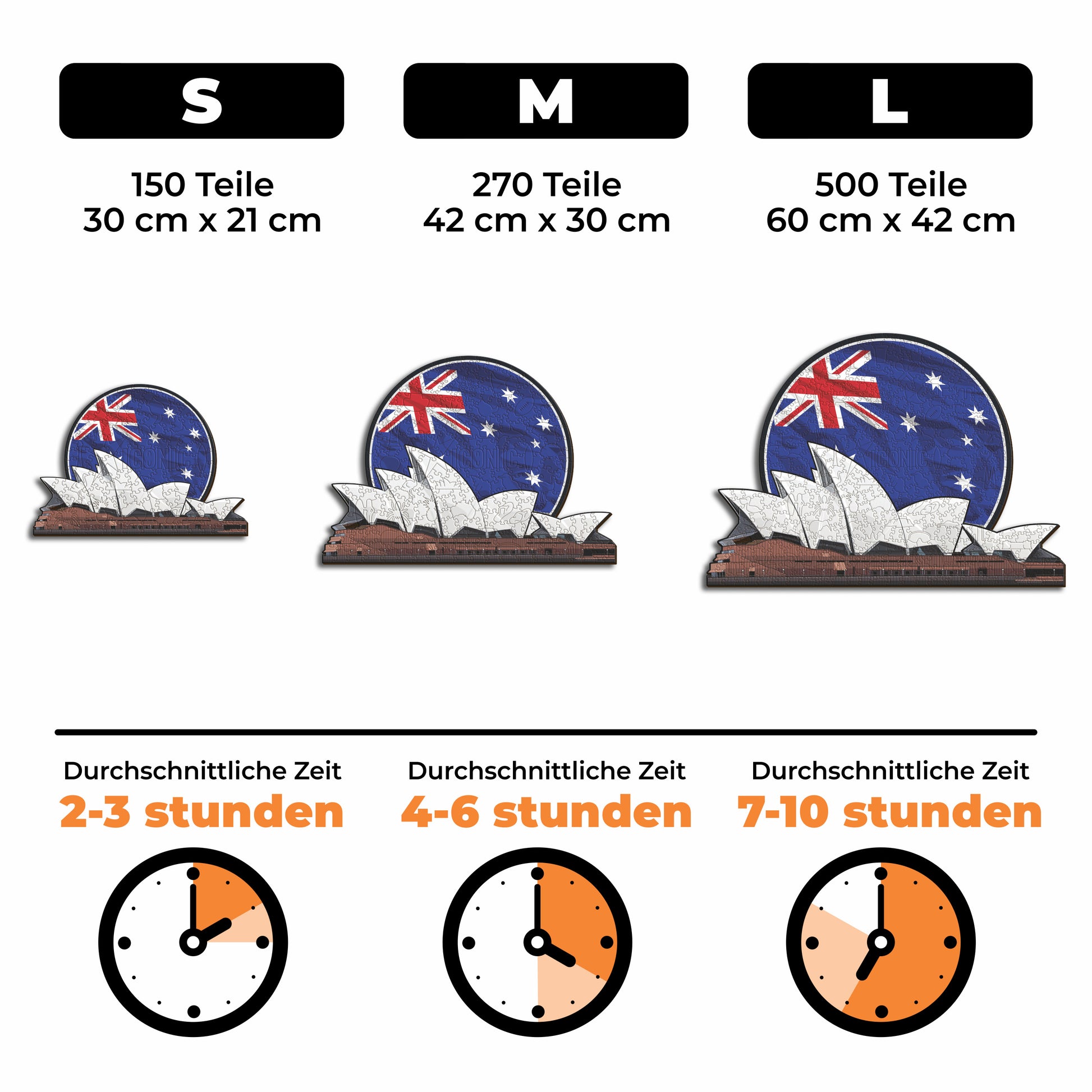 ✓ 1x Sydney Opera House - Official Wooden Box (featuring a printed guide on the front to help you complete the puzzle with ease)