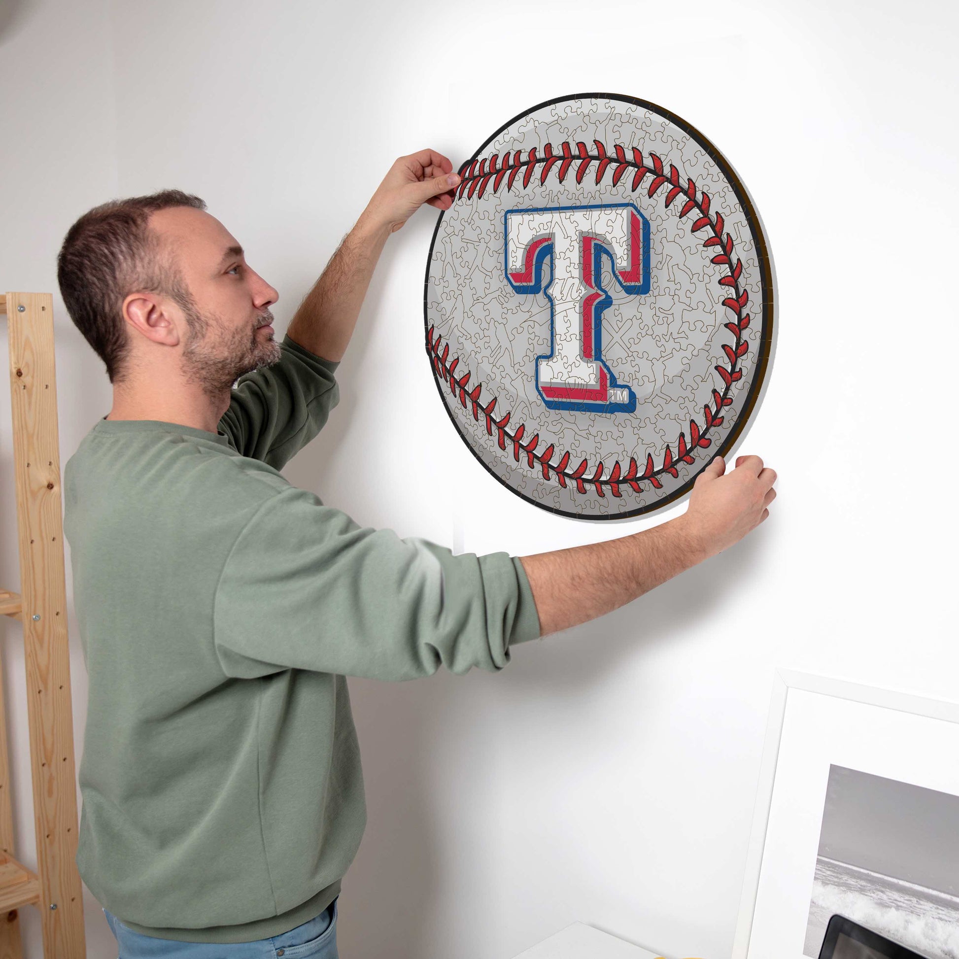 ✓ 1x Texas Rangers™ Baseball – Offizielles Holzpuzzle